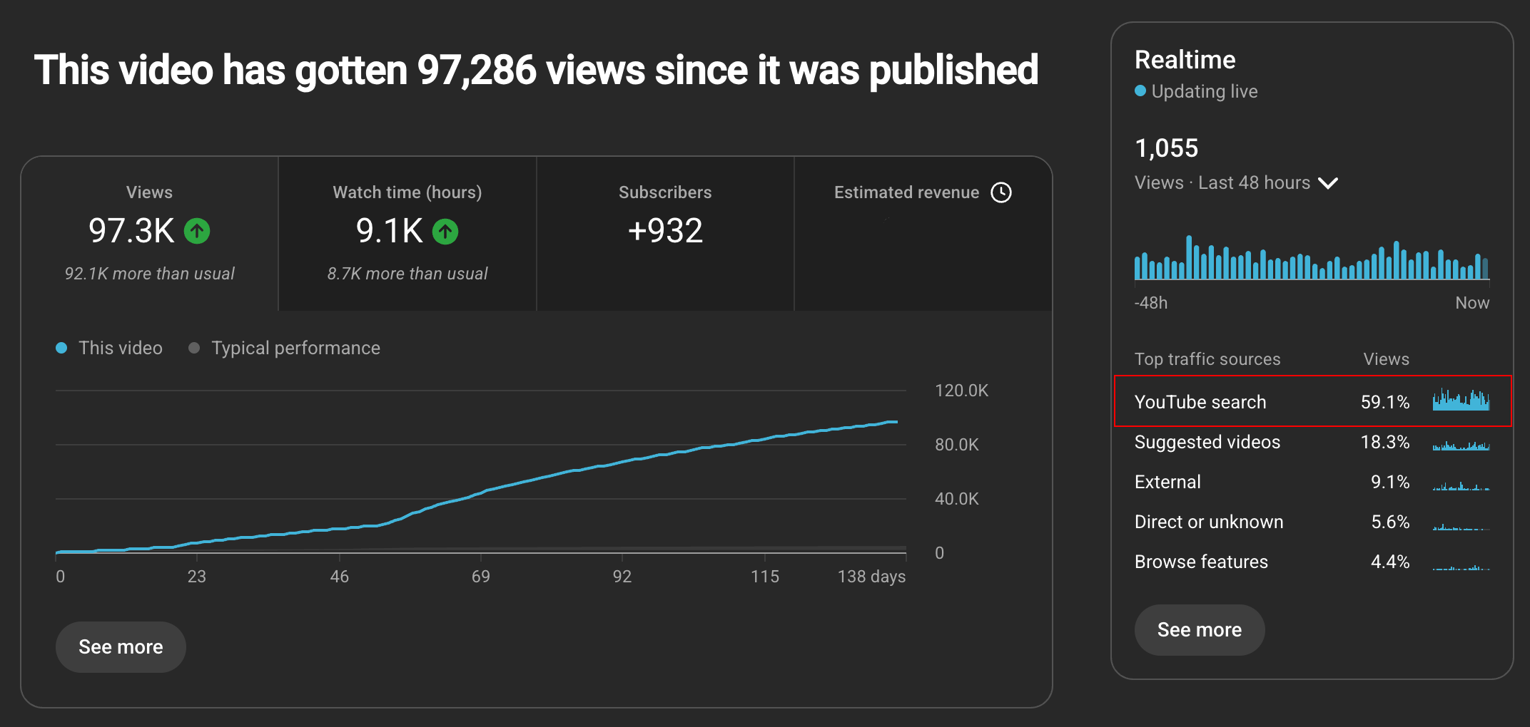 My tutorials are evergreen. As long as your app is relevant, people are searching for it — and finding my content. For popular apps, 50%+ of traffic comes from search alone. I'm there to answer that call.